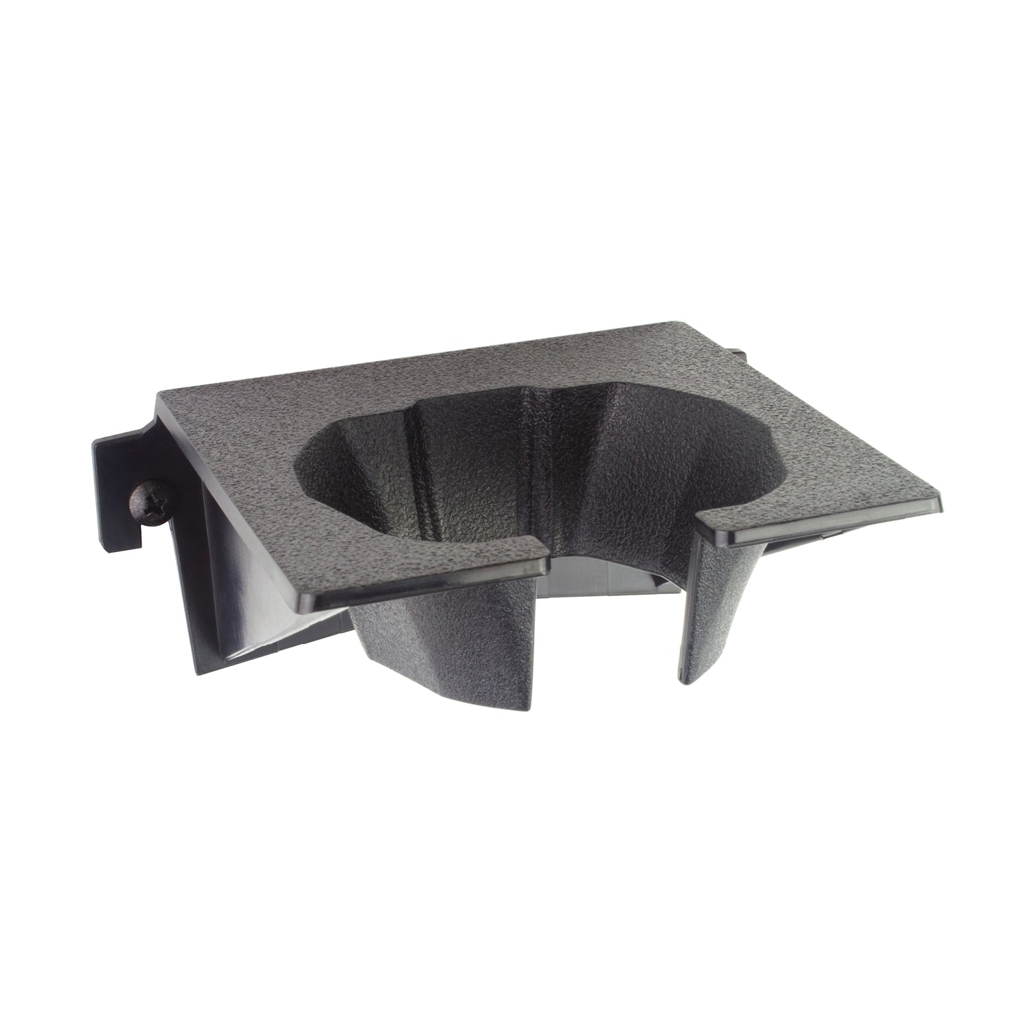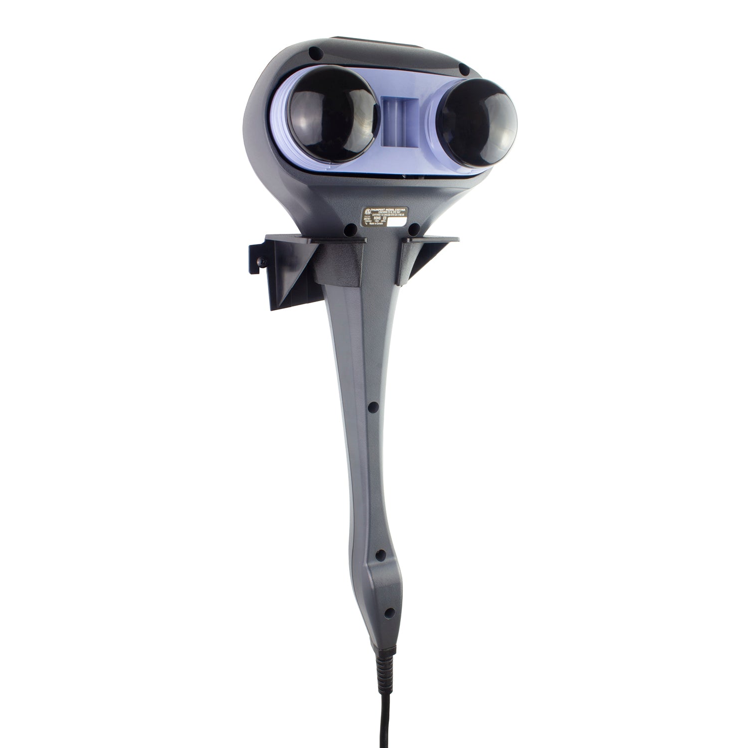 A black wall mount designed for mounting a Thumper Sport handheld massager.